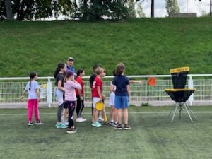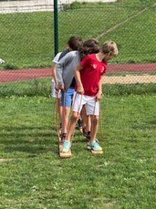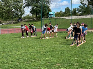 Jeudi 18 septembre, notre classe s'est rendu au complexe Epirey pour participer à une journée de cohésion sportive organisée par la ville de Dijon. Nous avons ainsi pratiqué le biathlon (tir à l'arc et course à pied), le disc-golf (lancer un disque de type frisbee dans une corbeille), l'orientation (recherche de balises à l'aide d'une carte), l'athlétisme (saut, relais, lancer de vortex). Ce qui nous a plu dans cette journée : être solidaires pour collecter le plus de bouchons (points) pour notre classe. Ce que nous avons trouvé le plus difficile : avancer ensemble sur des skis géants !